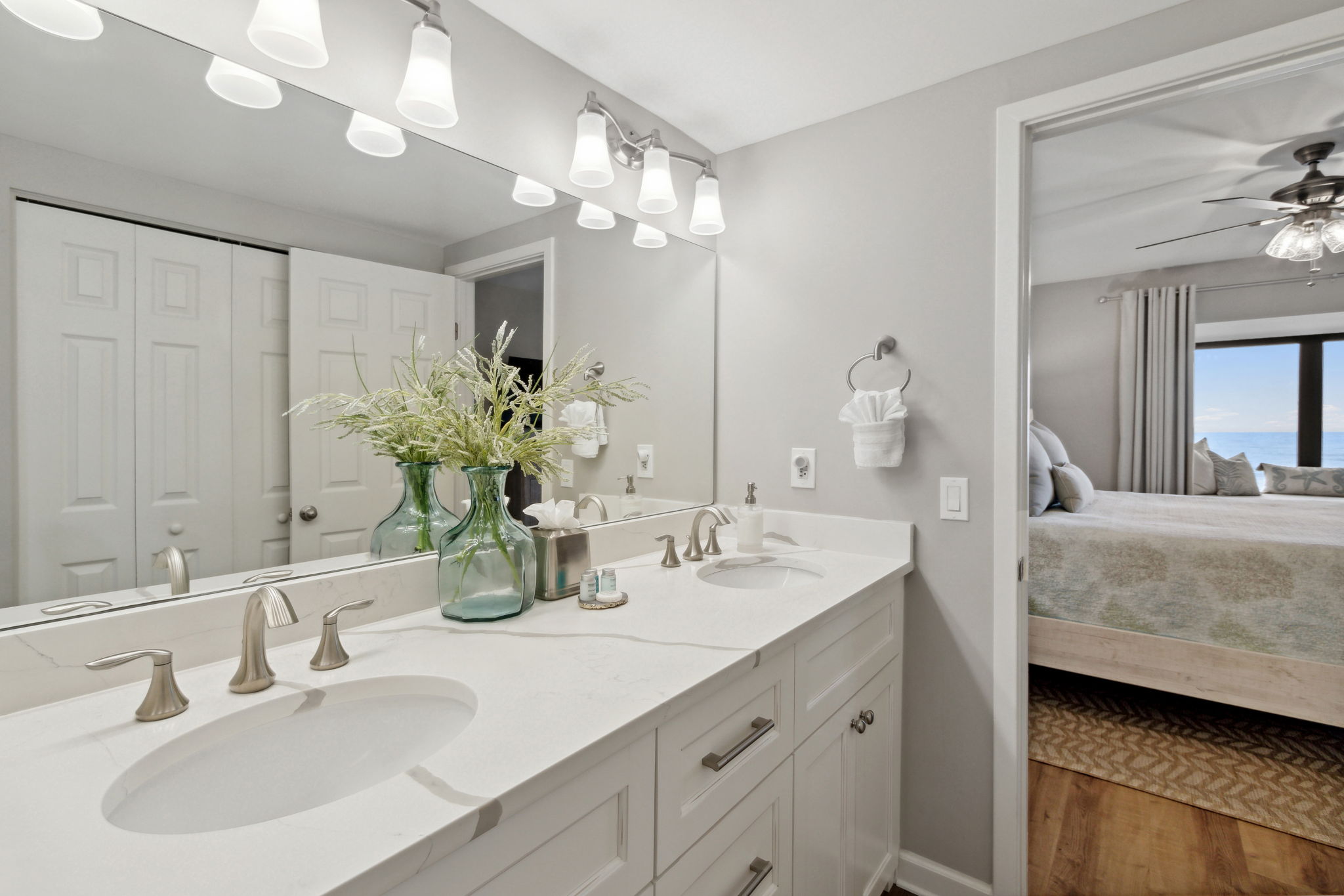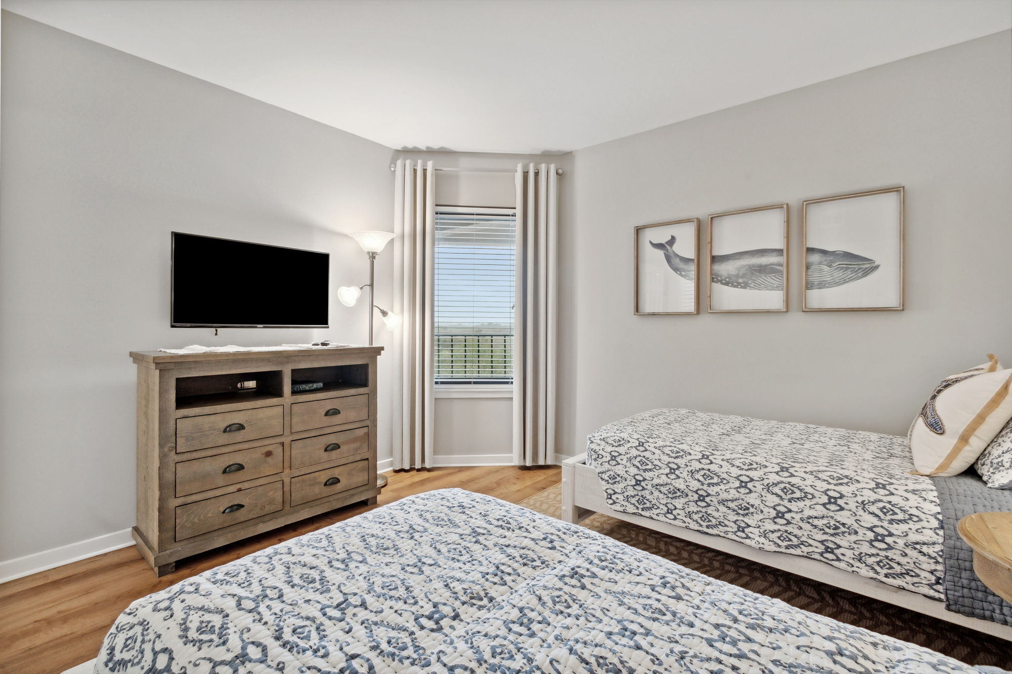 Retire to one of the elegantly decorated bedrooms, each with its own private bathroom. The Beachfront rentals Amelia Island feature plush bedding, ample storage, and sleek SMART TVs ensure every comfort is at your fingertips, promising a tranquil sleep. The sleeping quarters feature a king-size bed in the primary bedroom and twin beds in the second, catering to various family or group dynamics.